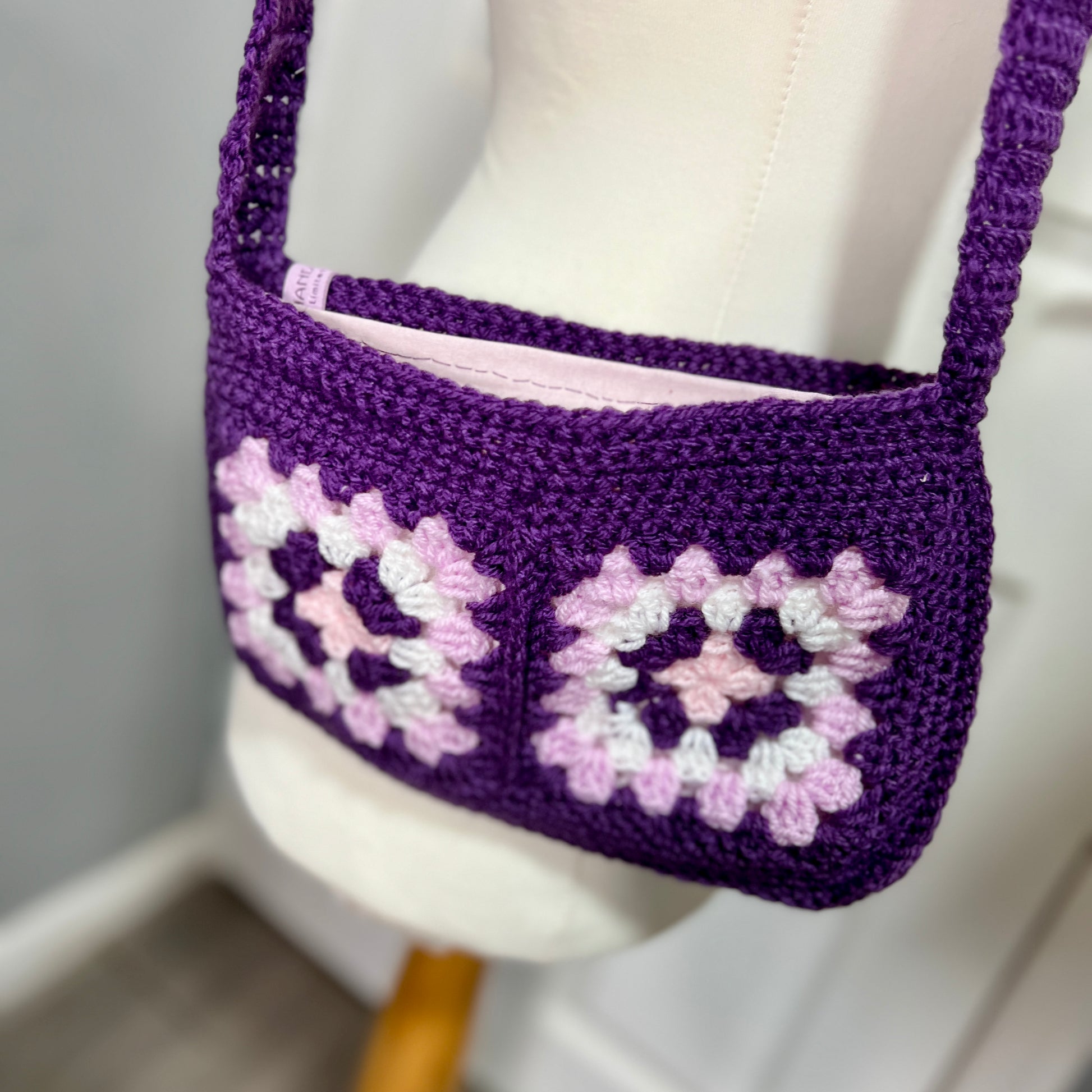 Crochet Granny Square Lined Shoulder Bag Medium